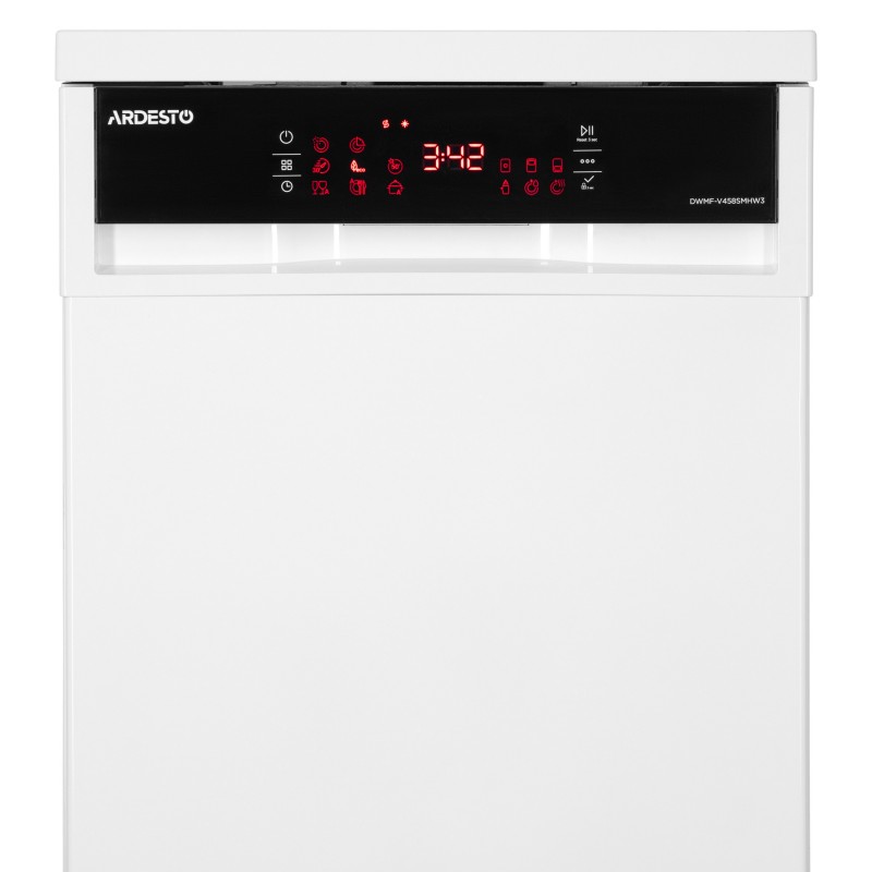 Посудомийна машина ARDESTO DWMF-V458SMHW3 – пристрій, який економить воду, електроенергію та час, а також вбереже руки від впливу агресивних мийних засобів під час миття посуду вручну.