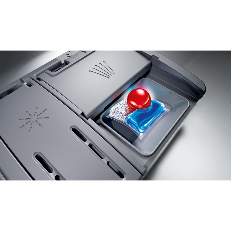 Завдяки двигуну EcoSilence Drive, машина працює тихо та енергоефективно, забезпечуючи рівень шуму лише 50 дБ. Інтелектуальна система Home Connect дозволяє керувати пристроєм дистанційно через смартфон, надаючи можливість запускати програми, перевіряти статус та отримувати повідомлення про завершення циклу миття.​