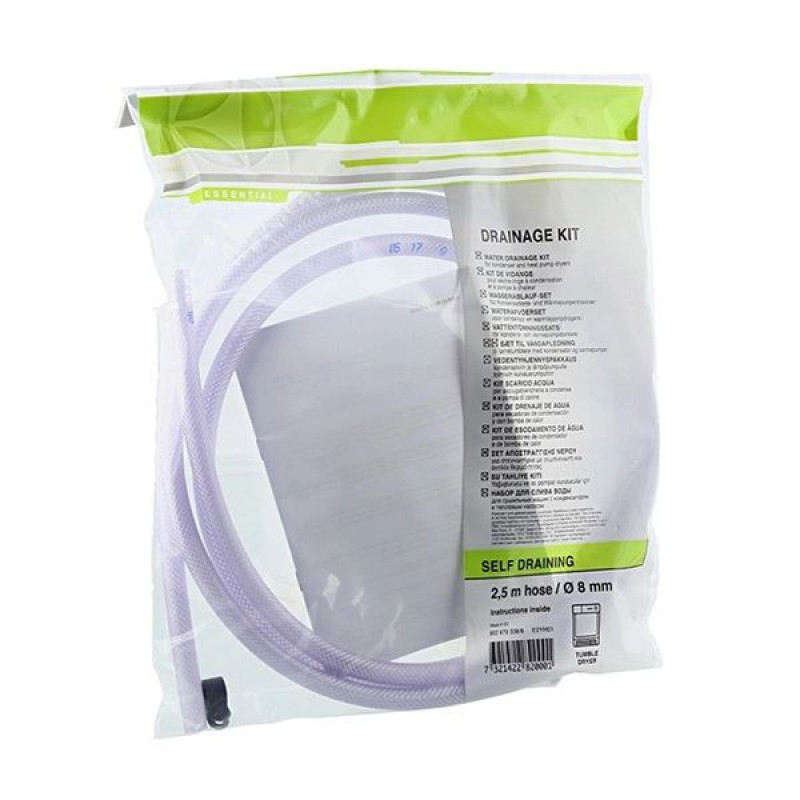 За допомогою набору для зливу води більше не потрібно спорожнювати резервуар для води вручну. Він легко під'єднується до найближчої раковини або водопроводу та автоматично відводить воду. Сумісна з моделями машин, в яких резервуар для води розміщений у верхній частині.