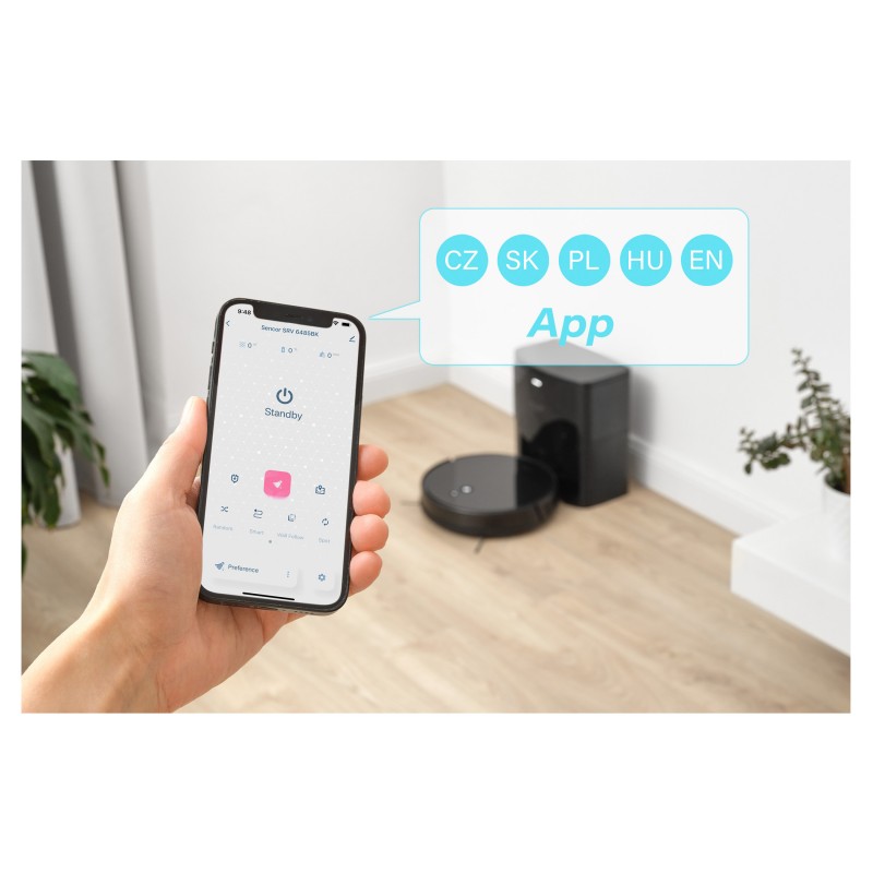 Sencor Робот-пилосос, 1000Вт, 3000Па, h=7.5см, вологе прибирання, конт пил -0.34л, вода -0.25л, автон. робота до 140хв, вага-3.5кг, НЕРА, самоочистка, чорний
