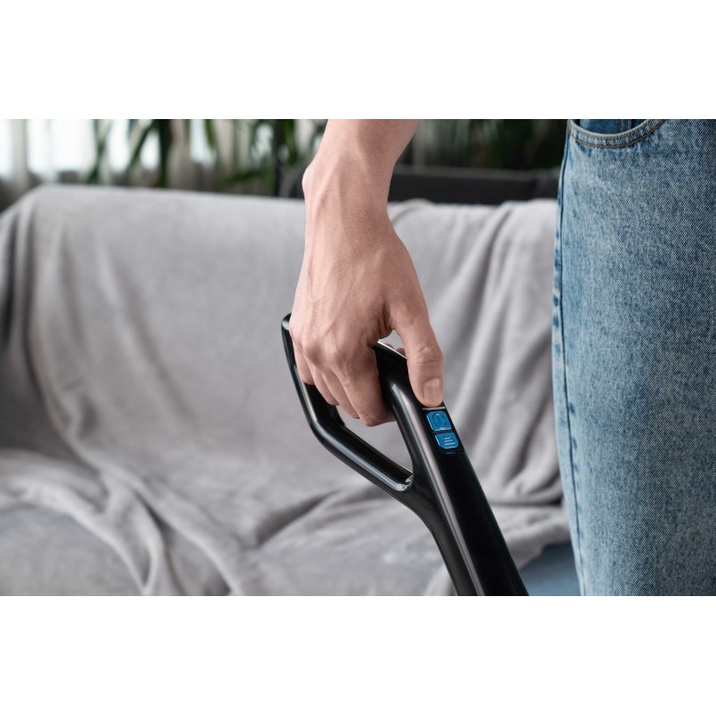 Пилосос із циклонною системою фільтрації оснащено контейнером для збирання пилу та сміття об’ємом 1 л. Пилозбірник легко знімається, при цьому потребу торкатися зібраного сміття майже усунуто, тож руки залишатимуться чистими. До того ж конструкцією передбачено губчатий HEPA-фільтр, що ефективно очищає повітря від дрібнодисперсних часточок, пилу та вбереже, зокрема, від пилового кліща. Принцип очищення: потрапляючи до контейнера, пил закручується по спіралі, тоді як великі часточки сміття залишаються на стінках, дрібний пил проходить через внутрішній фільтр.
