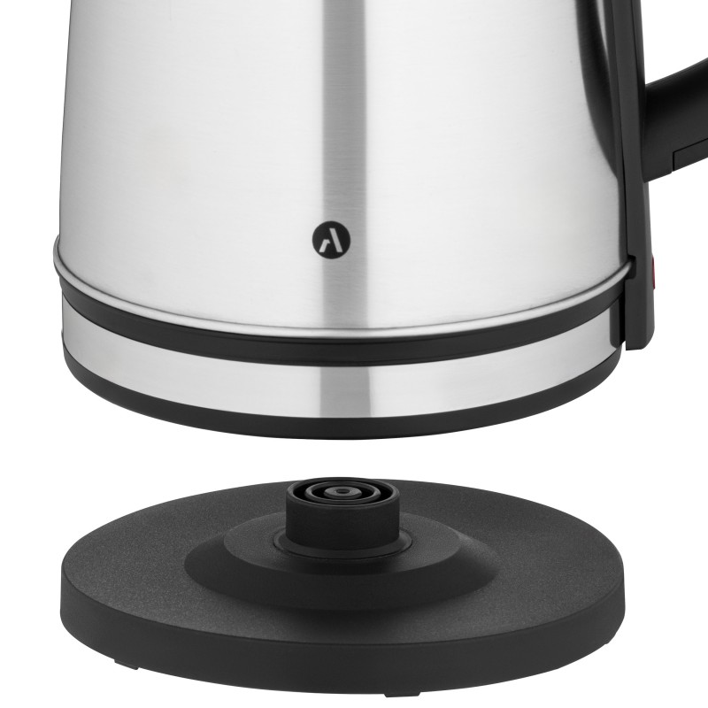 Конструкцією передбачено плавний механізм відкривання/закривання кришки й забезпечено щільне її прилягання, що унеможливлює випадкове відкриття й розбризкування води під час закипання. Ергономічне руків’я гарантує легкість користування будь-якою рукою без додаткового навантаження. У комплекті наявна підставка, що обертається на 360° і забезпечує легке зняття та встановлення чайника. Крім того, вона слугує місцем зберігання кабелю.
