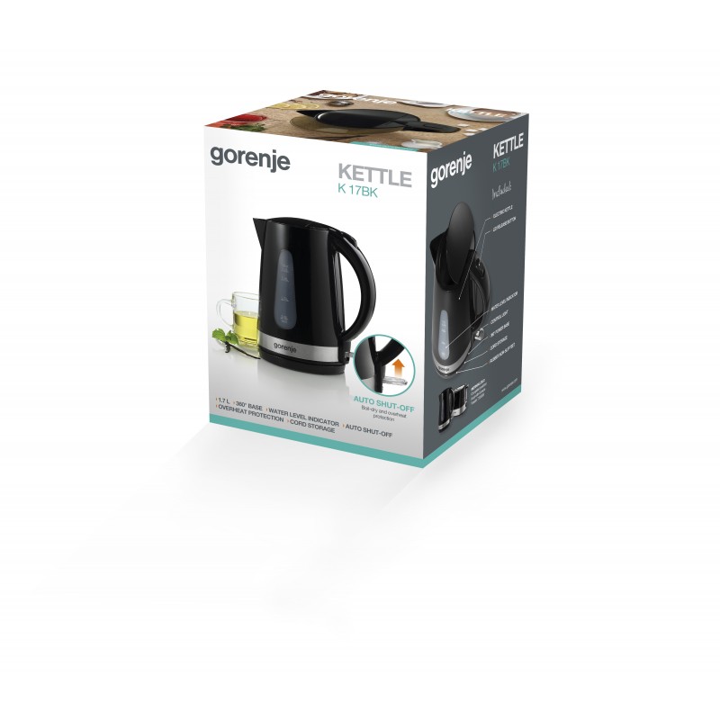 Gorenje Електрочайник, 1,7л, пластик, чорний