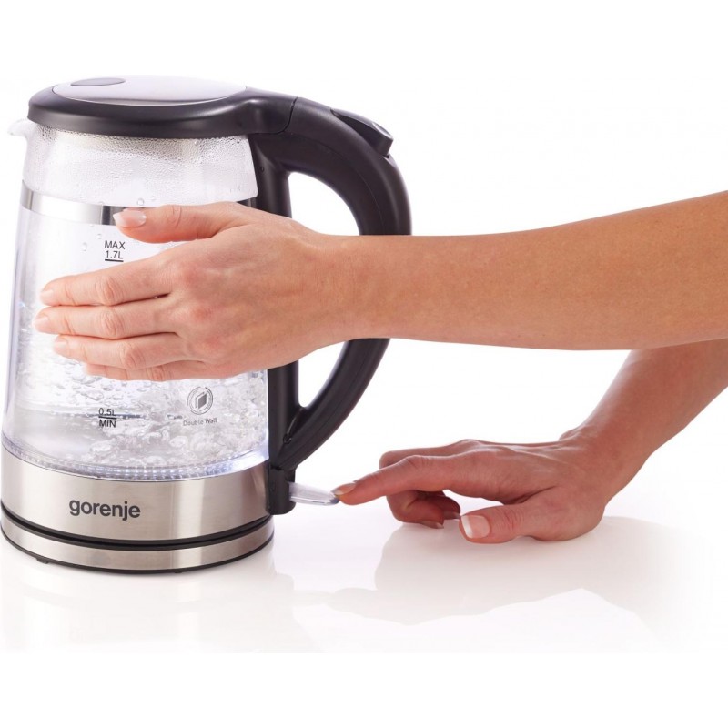 Gorenje Електрочайник 1.7л, 2,200 Вт, strix контроль, скло, чорний