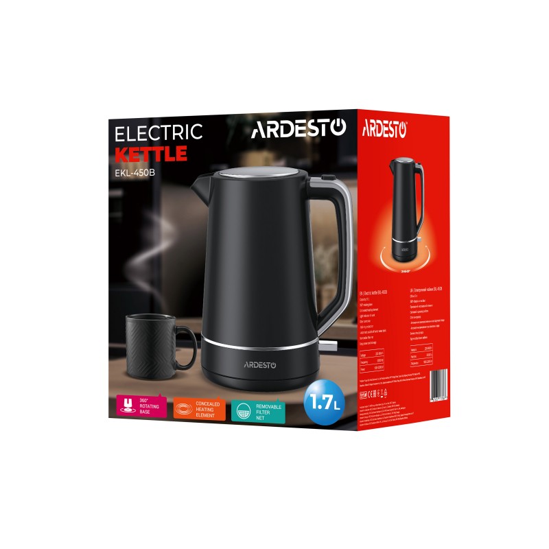 Електрочайник Ardesto 1.7л, Otter, пластик, чорний матовий
