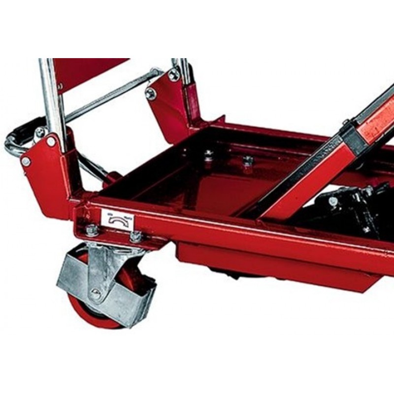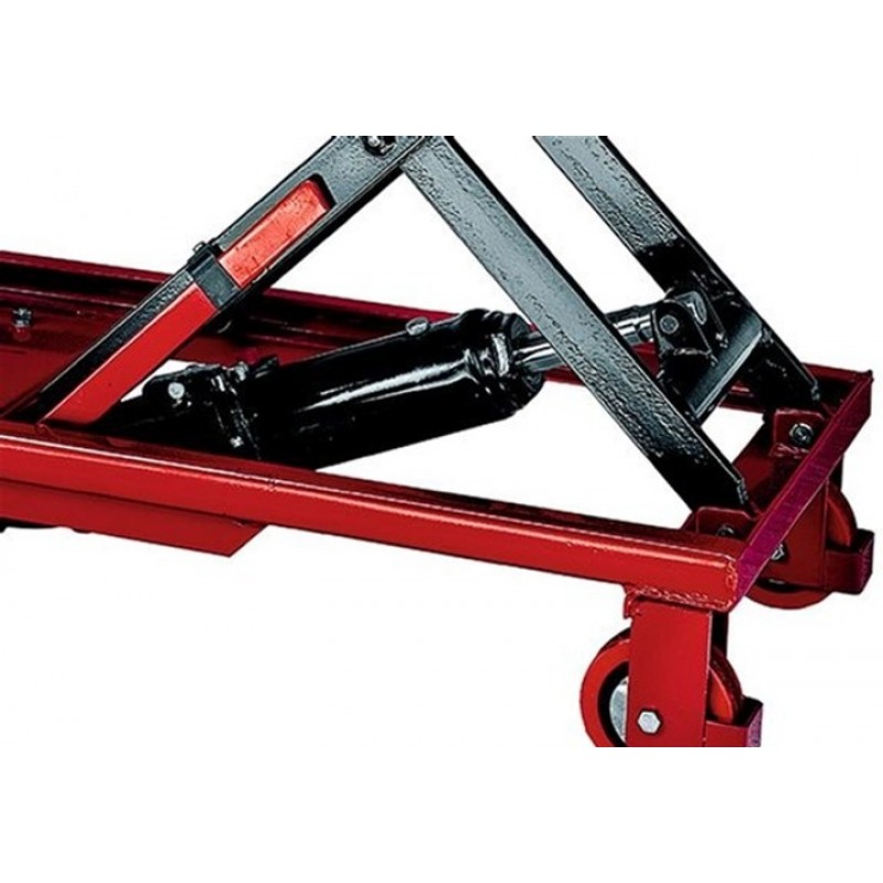 Розмір робочої поверхні 91.5×50 см дозволяє розмістити габаритні предмети, а міцна платформа витримує інтенсивну експлуатацію. Завдяки гідравлічному приводу можна плавно регулювати висоту підйому до 130 см. Зручна педаль забезпечує легкий контроль підйому, а система фіксації гарантує безпечну роботу.