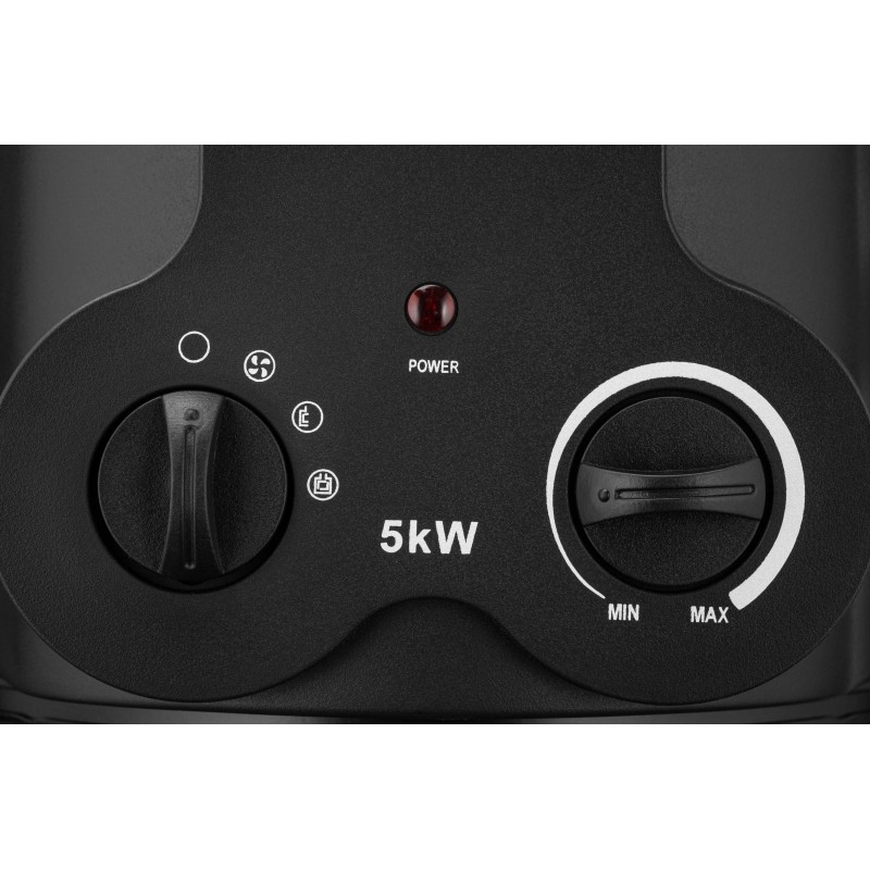 Керування обігрівачем здійснюється за допомогою механічних регуляторів. Ручне встановлення температури. Наявні три режими роботи, дві потужності в режимі обігріву, а також режим без нагрівання, тож пристрій може працювати як звичайний вентилятор.
