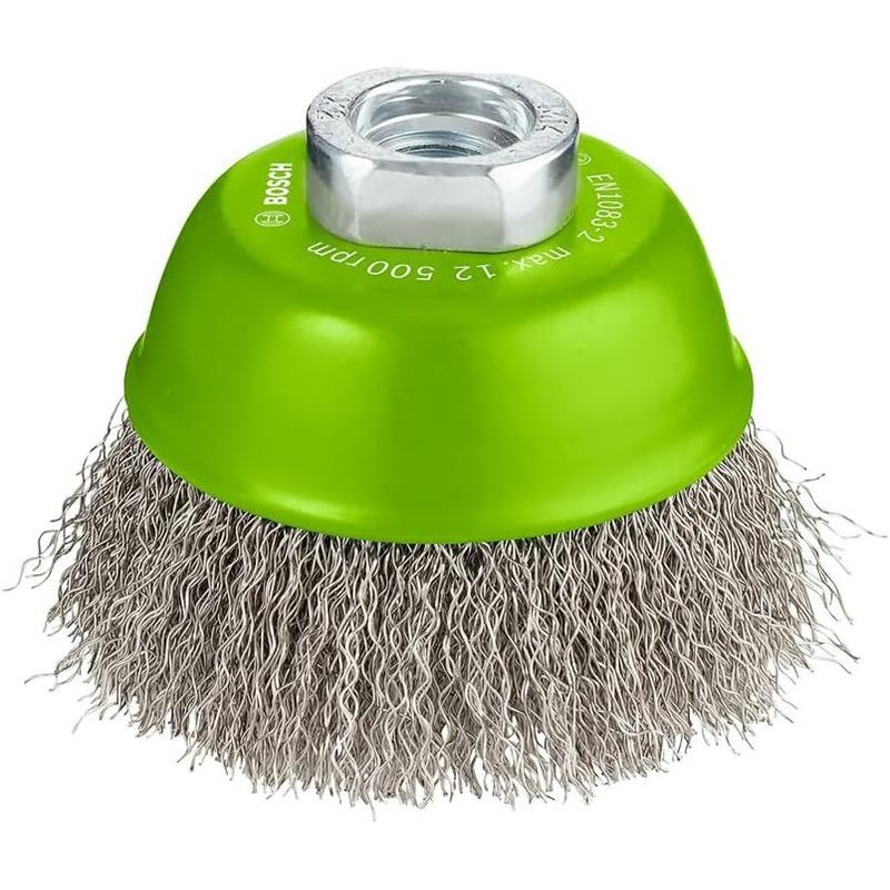 Ця щітка Bosch Professional виготовлена з високоякісної гофрованої нержавіючої сталі товщиною 0.3 мм, що дозволяє проводити м’яке очищення поверхонь без їх пошкодження. Ідеально підходить для роботи з кольоровими металами, алюмінієм, нержавійкою та іншими чутливими матеріалами. Завдяки стандартному різьбовому кріпленню M14, легко встановлюється на будь-яку стандартну УШМ. Застосовується для видалення іржі, окалини, фарби без утворення подряпин.