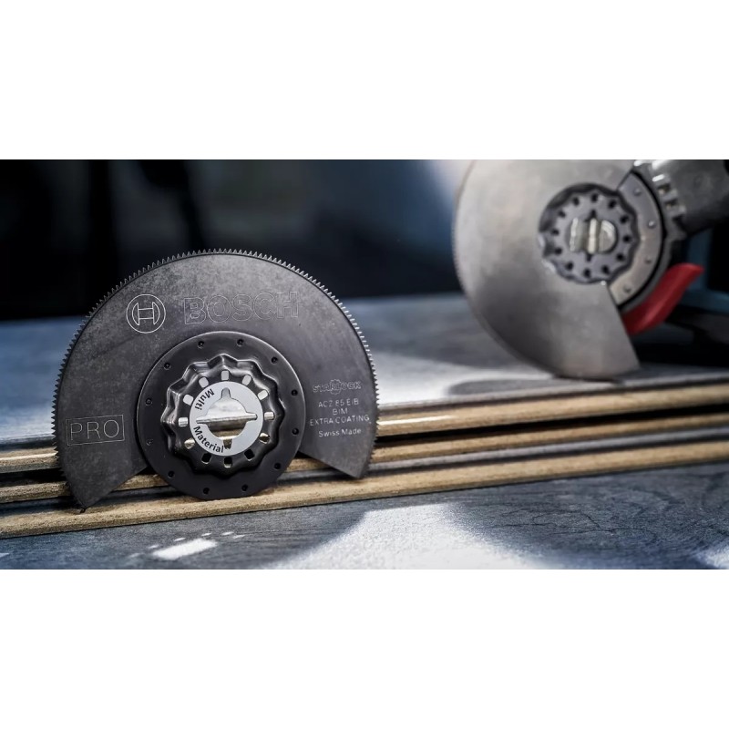 Це ефективне універсальне полотно для всіх видів внутрішніх будівельних і ремонтних робіт. Сегментоване полотно дає змогу без зусиль виконувати широкі та прямі пропили у всіх видах виробів з абразивної деревини, гіпсокартонних і волокнистих плитах, а також у незагартованих металах.