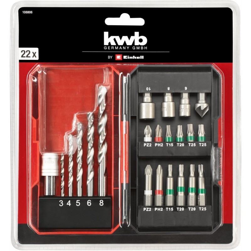 Einhell Набір біт та свердел по металу HSS, 22 шт, кейс S-Box, KWB