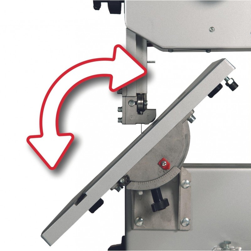 Регулятор висоти без інструментів призначений не тільки для точного різання, він також служить захистом полотна. Налаштований відповідно до ідеальної робочої висоти користувача, регулятор висоти також гарантує, що користувач може працювати безпечно та комфортно. Плавно регульований похилий стіл пилки можна регулювати від 0° градусів до 45° градусів, а положення стрічки можна регулювати за допомогою верхнього ролика. Паралельний упор має подвійне кріплення та можливість швидкого регулювання для прямих розрізів. Максимальна висота різу під кутом 45° становить 60 мм, а під кутом 90° – 101 мм. Стрічкова пила Einhell TC-SB 245 L має плавно регульований кутовий упор від -60° градусів до +60° градусів. Багатопозиційні регульовані шарикопідшипникові напрямні зменшують вібрацію полотна, забезпечуючи надійну роботу та водночас точніший різ. Наявність штовхача заготовки забезпечує додаткову безпеку під час роботи зі стрічковою пилкою. Перемикач нульової напруги забезпечує захист у разі збою живлення під час використання. Стрічкова пила оснащена роз'ємом пиловидалення 36 мм для витяжки, а також є вбудована Led лампа для підсвічування робочої зони.