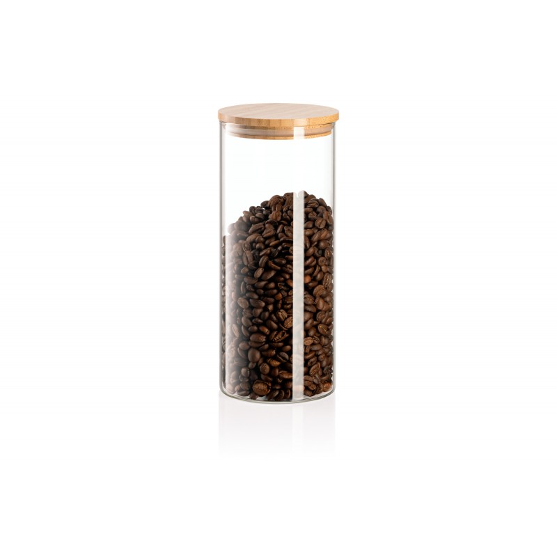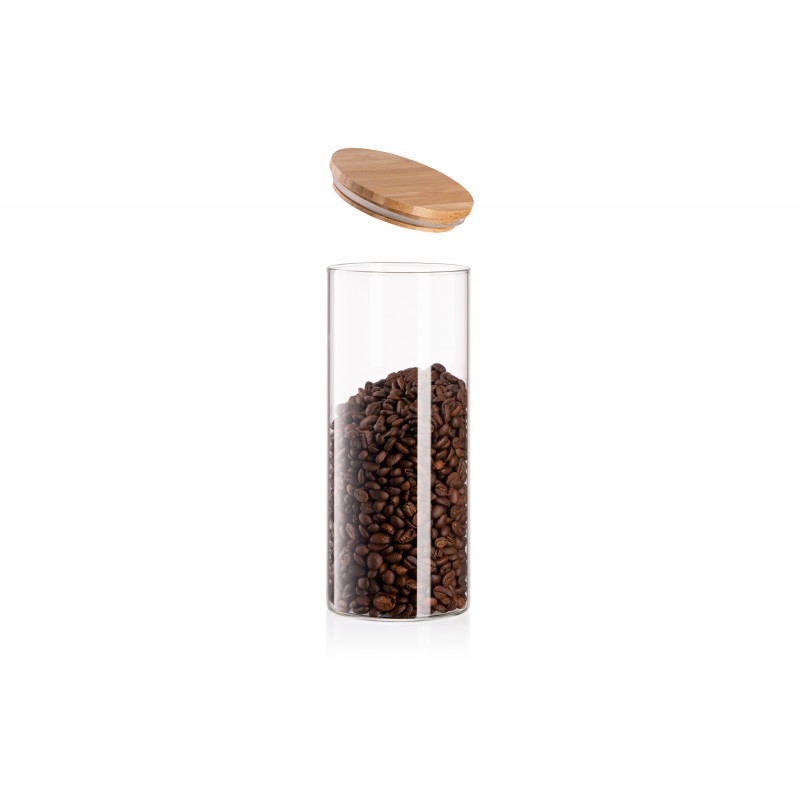 ARDESTO Банка для зберігання Midori, 1000мл, скло, бамбук, кругла, прозорий