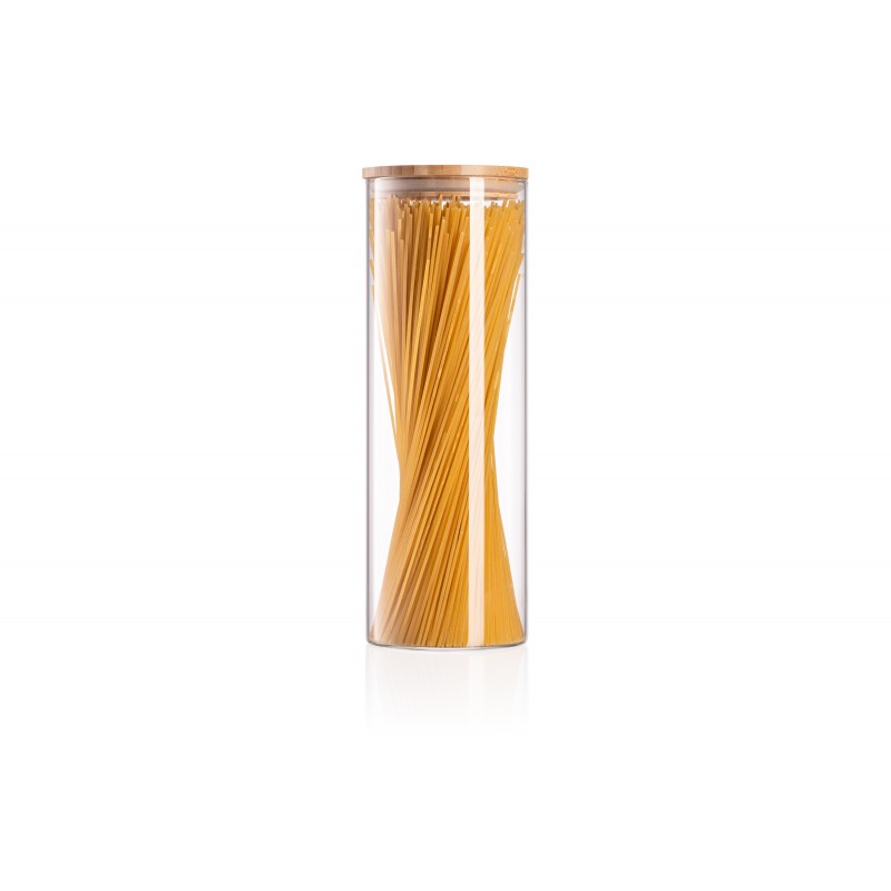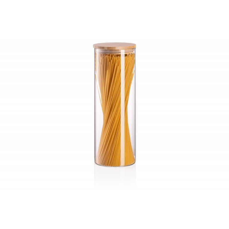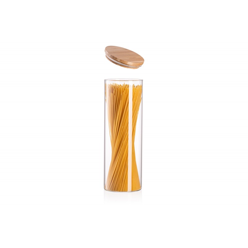 ARDESTO Банка для зберігання Midori, 1300мл, скло, бамбук, кругла, прозорий