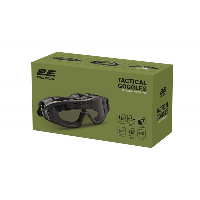 У комплекті з тактичною маскою 2Е, зокрема, є чохол для зберігання змінних лінз, м’яка сумка для транспортування набору, навіть вставка для діоптричних лінз.