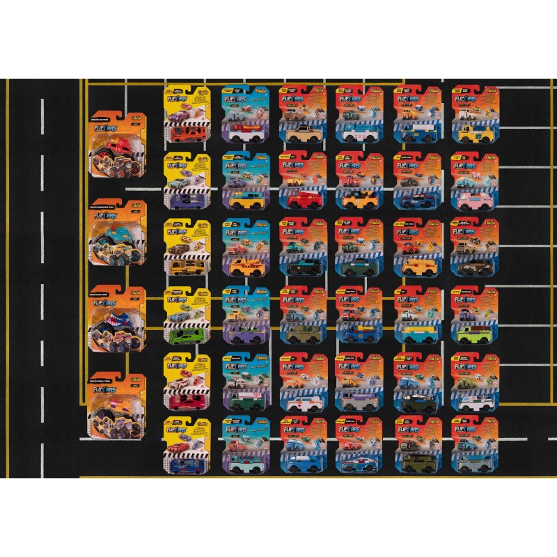 З Flip Cars малюк розвиває фантазію, тренує дрібну моторику, координацію рухів, активізує просторове і логічне мислення, а ще чудово проводить час. У колекції велика кількість моделей, а значить можна зібрати цілий автопарк і змагатися з друзями. Машинки ніколи не набриднуть, адже купуючи одну модель, діти отримують цілих дві яскравих іграшки і масу ідей для забав і розваг як поодинці, так і в компанії.