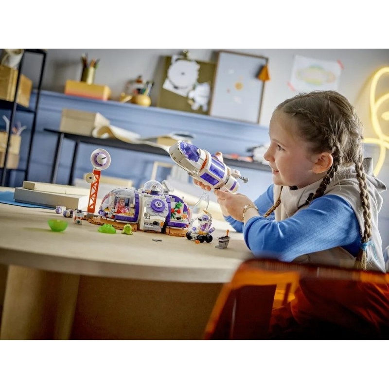 Існує багато іграшкових аксесуарів і деталей для сюжетної гри, включно з марсоходом, дроном і науковими інструментами. Цей набір має спеціальну деталь космічного повітряного шлюзу, щоб діти могли поєднувати інші сумісні набори LEGO на космічну тематику для ще більших космічних пригод (продаються окремо).
