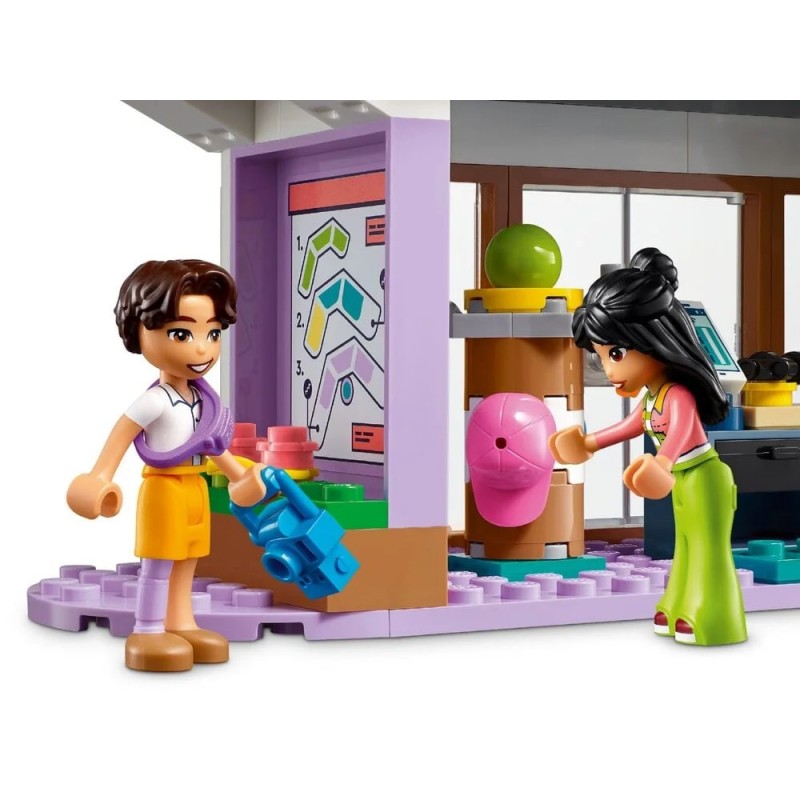 І це лише початок! Цей конструктор має безліч функцій, які допоможуть дітям розвивати дружбу, допомагаючи персонажам досліджувати магазини й обирати улюблені речі. Ця іграшка має реальні деталі торговельного центру, які потішать маленьких покупців: ресторан локшини, кіоск з морозивом, банкомат, водоспад і ставок