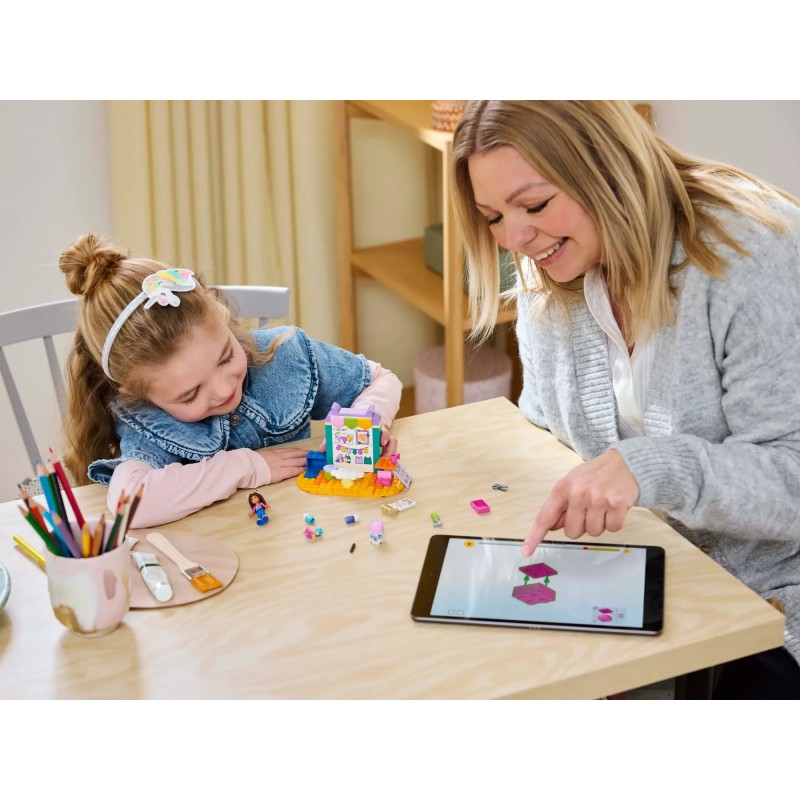 LEGO Ляльковий будиночок Ґаббі «Майструємо з Доцею-Бокс» для дівчаток і хлопчиків — це ще й набір для декоративно-прикладного мистецтва. До набору конструктора входять пензлик, фарби, ножиці й балончик з розпилювачем, а також фігурка мініляльки Ґаббі й фігурка Доці-Бокс. Ґаббі й Доця-Бокс разом малюють картину й створюють модель лялькового будиночка Ґаббі. Є навіть драбинка, щоб допомогти героям дістатися до верхівки моделі. Ігровий набір має розмальовану стіну і котячі вушка, що стирчать нагорі. Набір містить безліч цікавих деталей, що надихають на творчу гру, а кубик для початківців допоможе дітям розпочати конструювання. Зрозумілі вказівки з конструювання викладено у вигляді яскравої ілюстрованої інструкції.