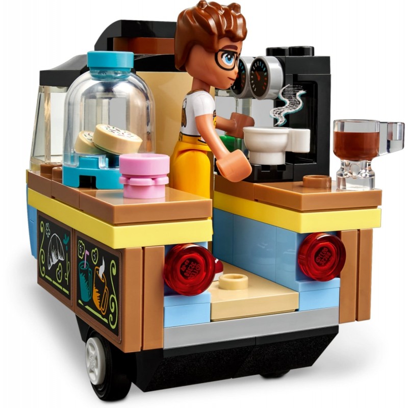 Серед аксесуарів — круасан, два макаруни, печиво, контейнер для печива, кавоварка, філіжанка кави, гарячого шоколаду й чаю, а також монета й книжка для Алії та кісточка для Айри. Відкрийте для себе більше ідей подарунків для дітей, які люблять іграшки для приготування їжі у всесвіті LEGO Friends, де є безліч можливостей для розповіді історій, коли діти розігрують реальні пригоди
