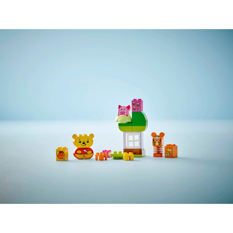 Дошкільнята уявляють, що вони на вечірці з 3 фігурками LEGO DUPLO: Вінні Пухом, Тигриком і П'ятачком. Кожен персонаж має двостороннє обличчя з різним виразом, що дарує безмежні творчі можливості для гри та створення історій. Ця весела функція також забезпечує соціально-емоційні навчальні заходи для малюків, оскільки вони досліджують різні емоції, які діти можуть відчувати на вечірках, від радості, відкриваючи подарунки, до дискомфорту, з'ївши занадто багато смаколиків!