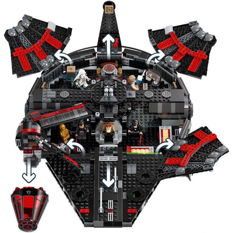 Легкий доступ до інтер’єру — Відкрийте верхні панелі, щоб погратися з деталізованим внутрішнім простором: знімний трон Дарта Джар Джара, командний центр, гіпердвигун, двоярусні ліжка, зона розваг і тюремна камера