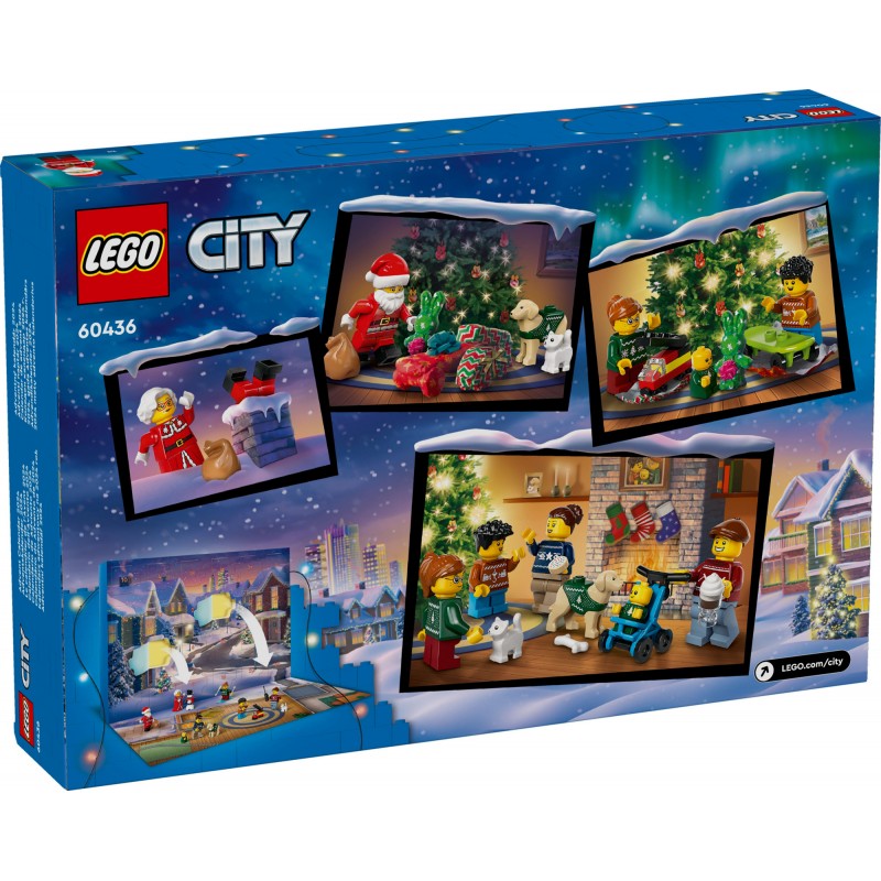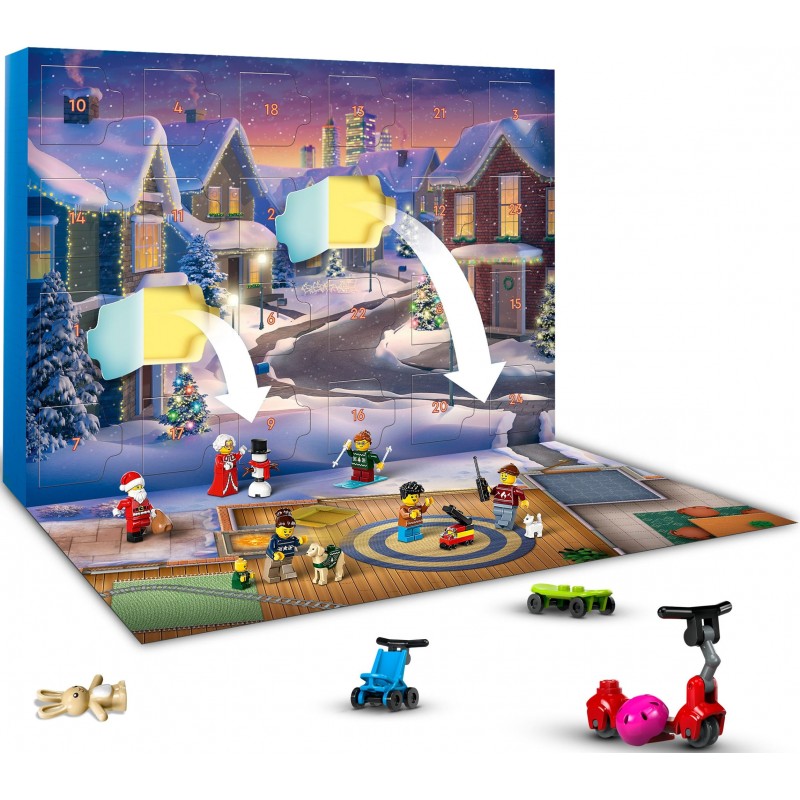 24 святкові сюрпризи – У наборі мініфігурки Санти й місіс Клаус, персонажі у різдвяних светрах, фігурка песика, міні-збірки та святкові аксесуари