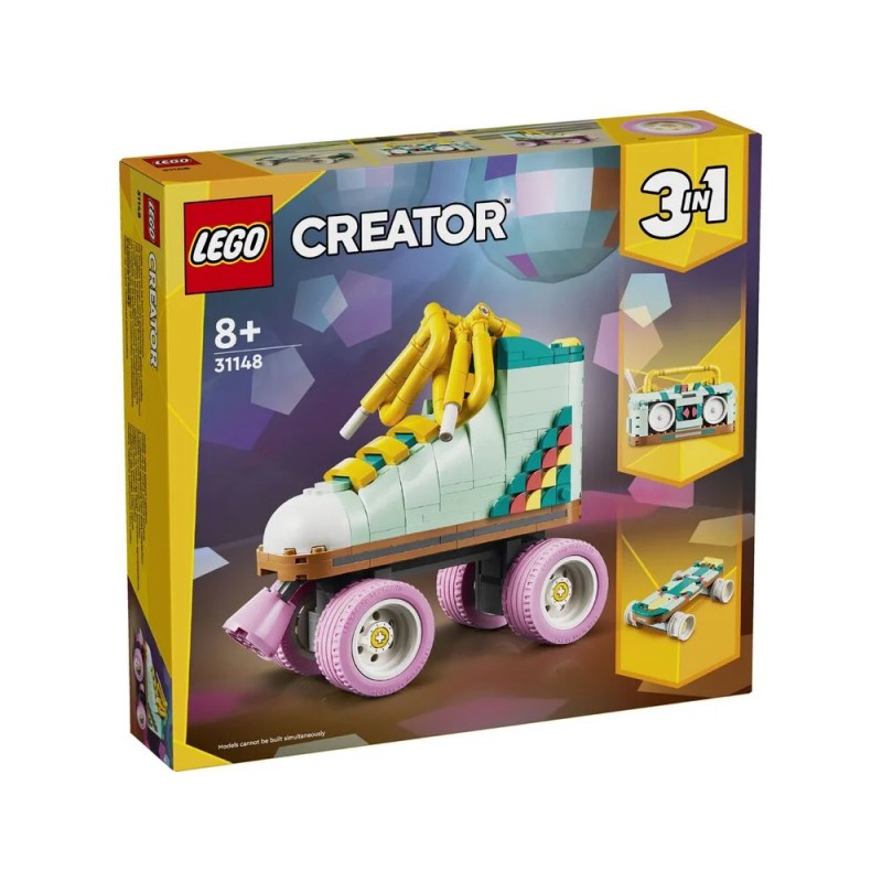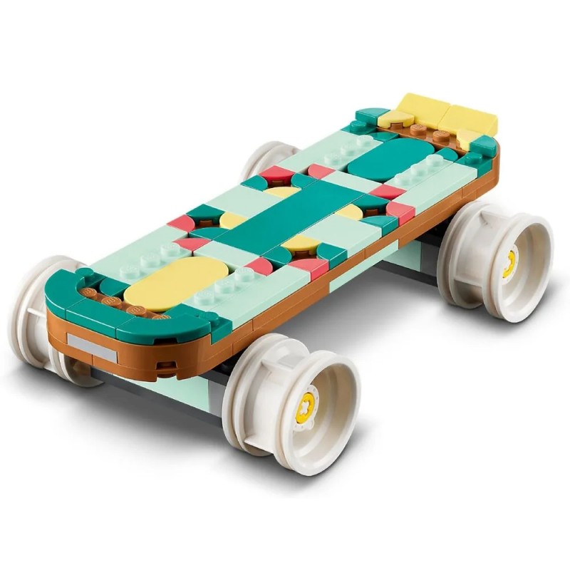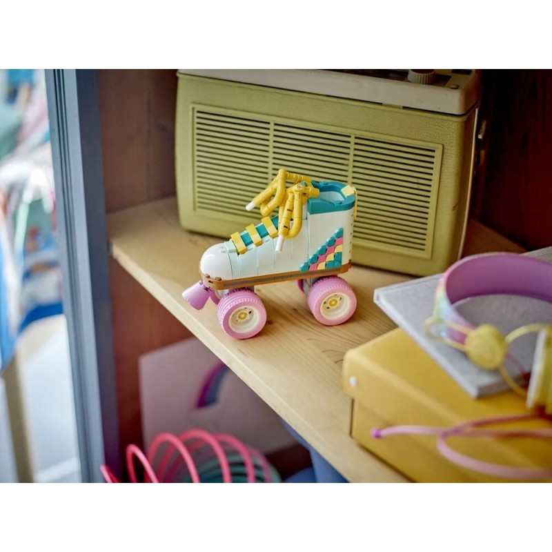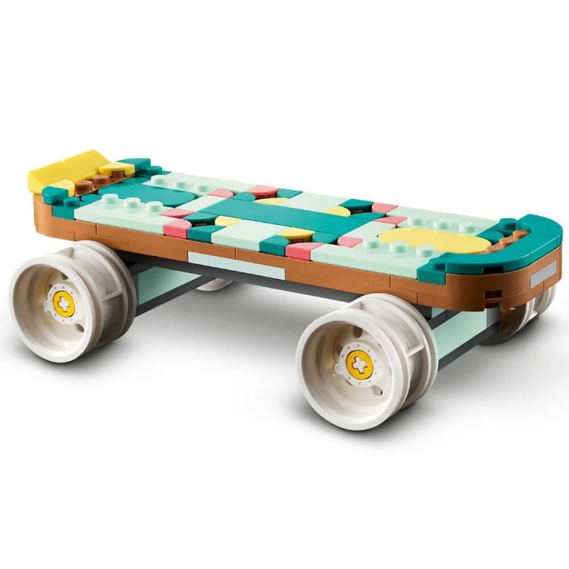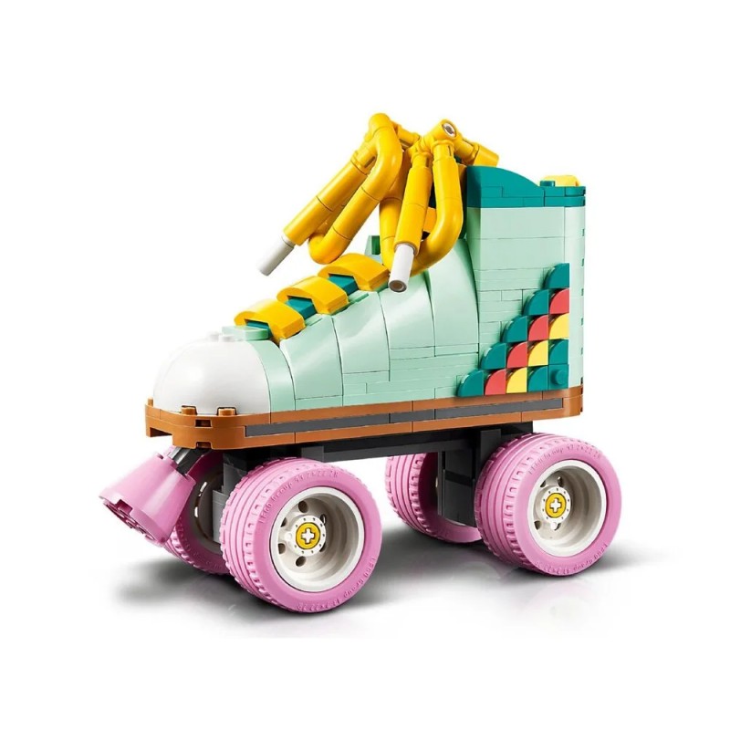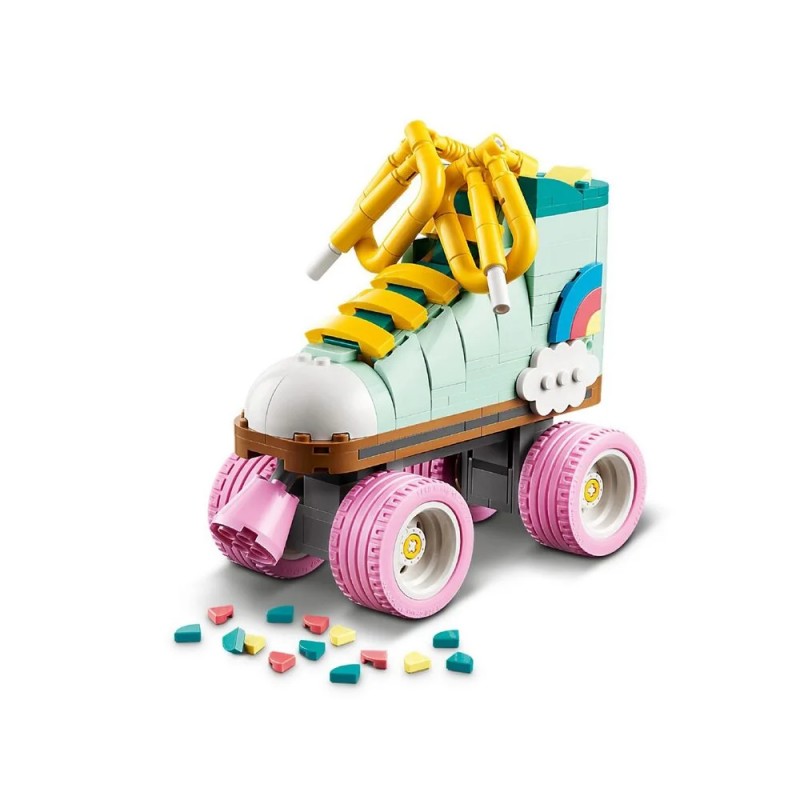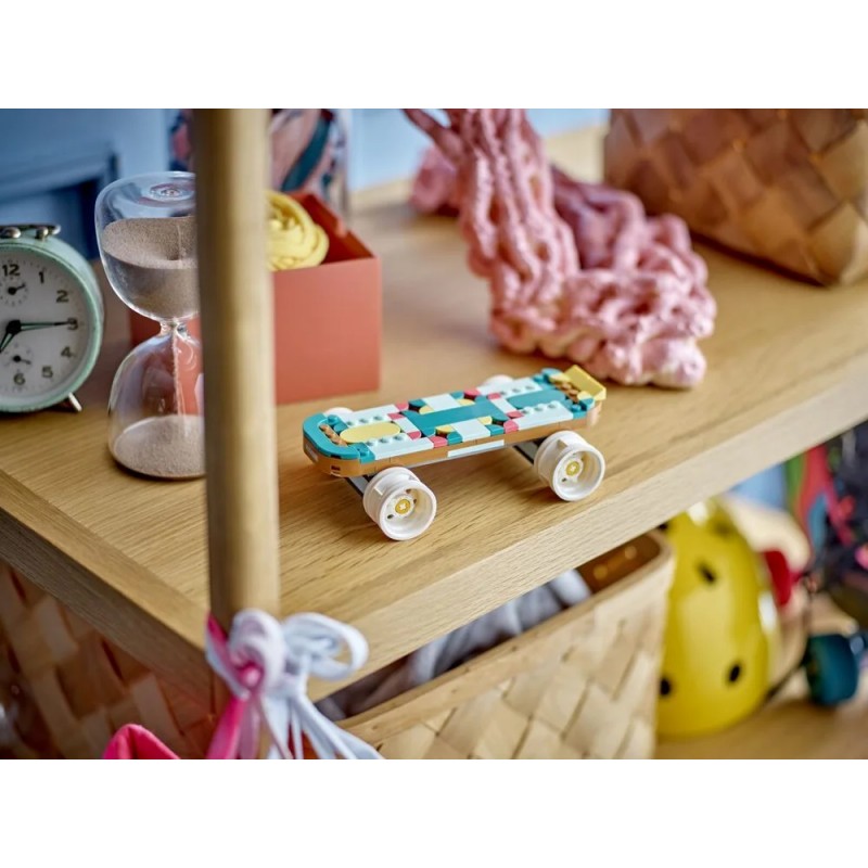 Малюки можуть зібрати іграшкові ролики, а потім перетворити їх на різнобарвний ретро міні скейтборд із чотирма рухомими колесами чи ретро магнітофон із маленькою антеною