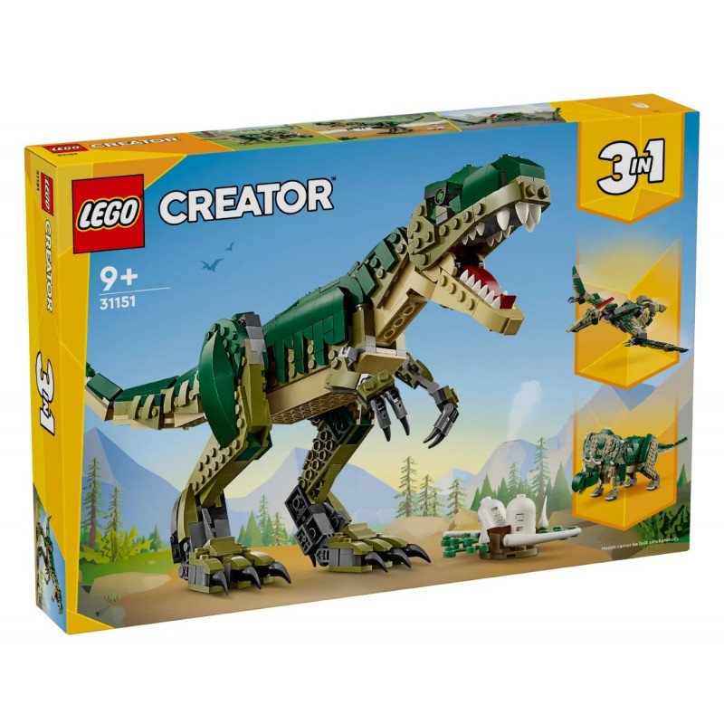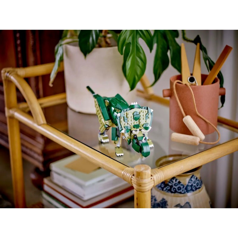 Цей конструктор LEGO® відкриває дітям цілий світ захопливих ігрових можливостей із трьома різними фігурками динозаврів, які можна створити з одного набору кубиків. Малюки можуть створити фігурку тиранозавра, перетворити її на страхітливого трицератопса із трьома рогами або ж на птеродактиля з великими рухомими крилами.