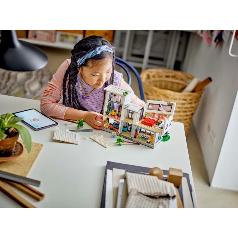 Цей дитячий конструктор LEGO відкриває цілий світ захопливих ігрових можливостей з трьома різними моделями будинків, які можна створити з одного набору кубиків. Діти можуть скласти сучасний будинок, перетворити його на стильну триповерхову міську будівлю із джакузі й терасою на даху або ж — на лісову хатинку. Сучасний будинок і триповерхова міська будівля мають доступ до кімнат ззаду, а лісова хатинка має дах, що відкривається. До набору входять дві мініфігурки, і шанувальники LEGO можуть змінювати їхнє вбранням. Кожну з трьох моделей можна створити завдяки додатку LEGO Builder для захопливої цифрової гри.