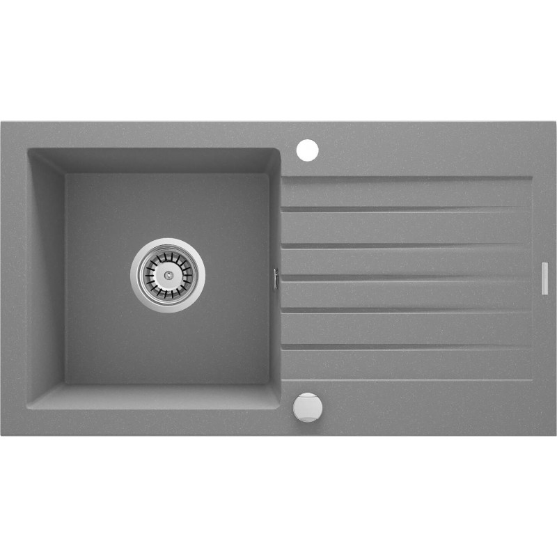 Deante Мийка кухонна Zorba, граніт, прямокутник, з крилом, 760х440х160мм, чаша - 1, накладна, металічний сірий