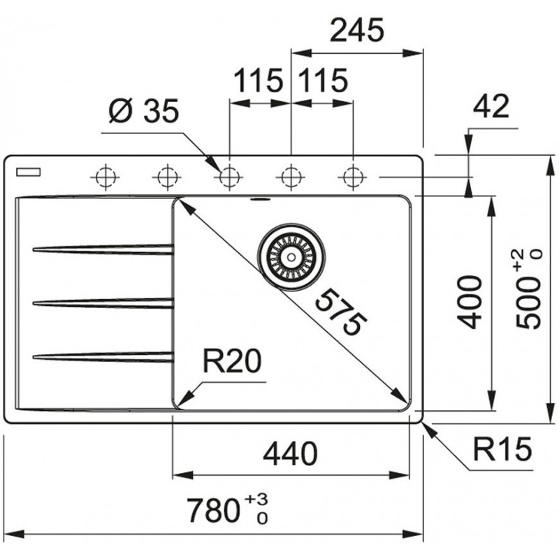 Мийка кухонна Franke Centro, фраграніт, прямокутник, з крилом, 780х500х200мм, чаша - 1, накладна, CNG 611-78 TL , онікс 114.0630.471.