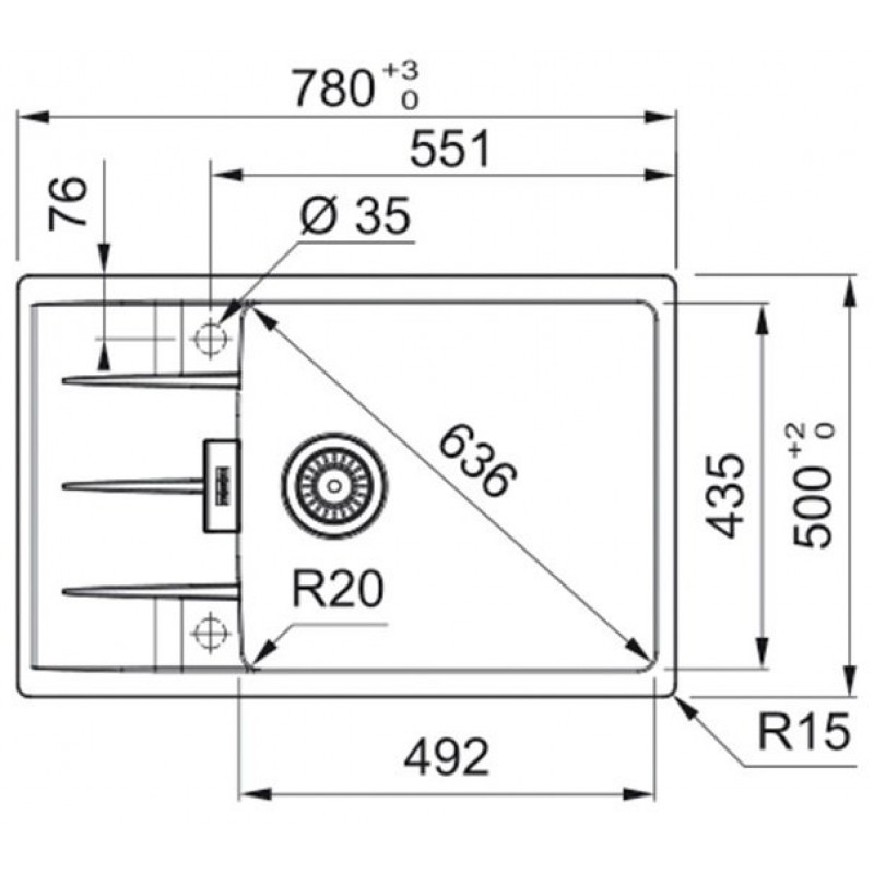 Franke Мийка кухонна Centro, фраграніт, прямокутник, з крилом, 780х500х200мм, чаша - 1, накладна, CNG 611-78 XL , онікс