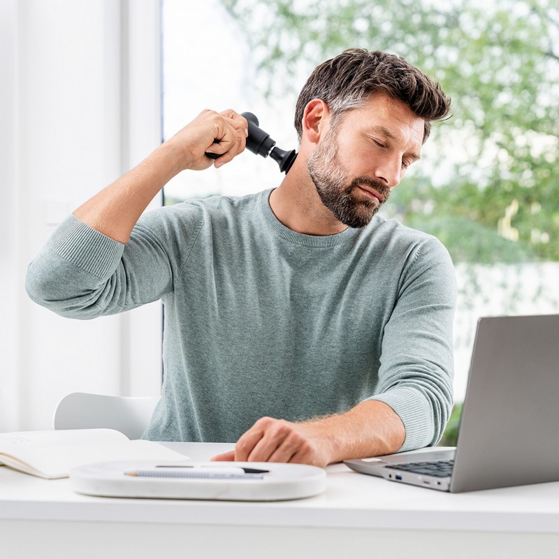 Особливості 3 рівня інтенсивності, Літій-іонний акумулятор, LED індикатори рівня заряду акумулятора та рівня інтенсивності, Футляр для зберігання в комплекті, Цілеспрямований масаж м'язів для їх активації та регенерації, Оптимально підходить для чутливих ділянок тіла, таких як м'язи шиї, стоп і щелепи