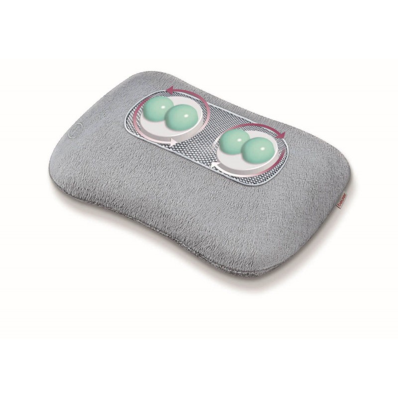 Beurer Масажна подушка для плечей, шиї, спини та ніг, від мережі, 1,34кг, 4 головки шиацу, підігрів, сірий