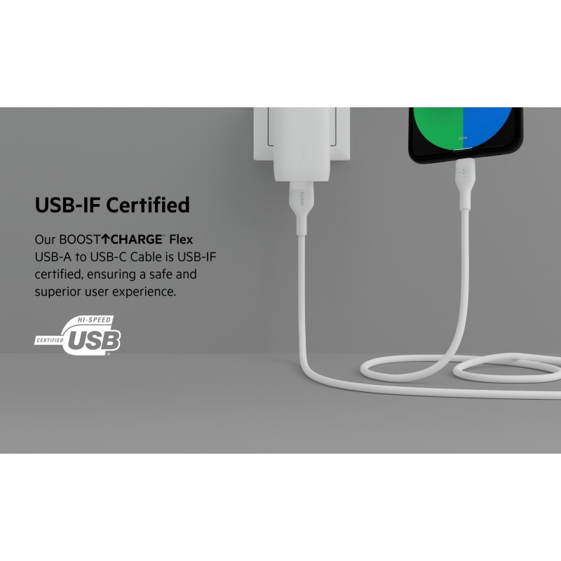 Отримайте гнучку м'якість із підвищеною міцністю та продуктивністю в зарядному кабелі. Наші силіконові кабелі BOOST CHARGE Flex із сертифікацією USB-IF не заплутуються, не перекручуються та не зношуються, забезпечуючи розширені функціональні можливості кабелю USB-A-USB-C. Доступний у 4 стильних кольорах: чорному, білому, синьому та рожевому.