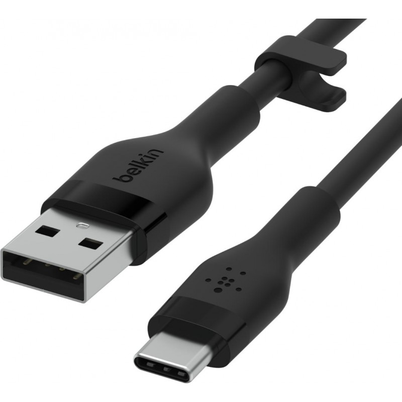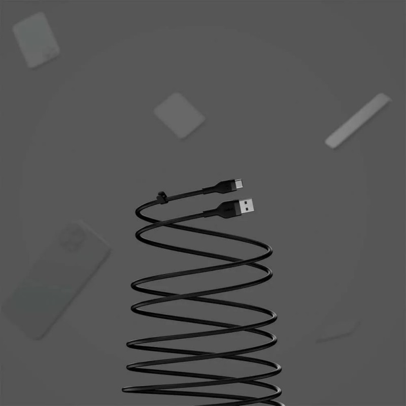 Кабель USB-A > USB-C заряджання/синхронізації Belkin 1м, 15Вт, Type-C, силіконовий з кліпсою, чорний