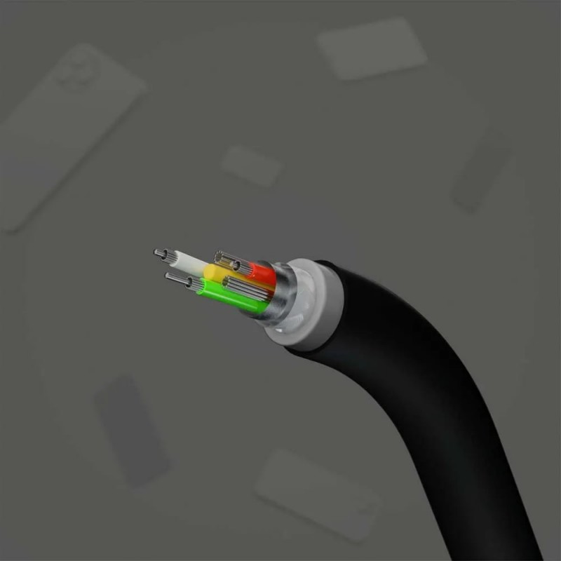 Особливістю цієї моделі є силіконовий корпус, який робить кабель неймовірно гнучким і стійким до перегинів, зменшуючи ризик пошкодження під час тривалого використання. Кліпса для зберігання допомагає уникнути заплутування кабелю, забезпечуючи його компактність і охайний вигляд.