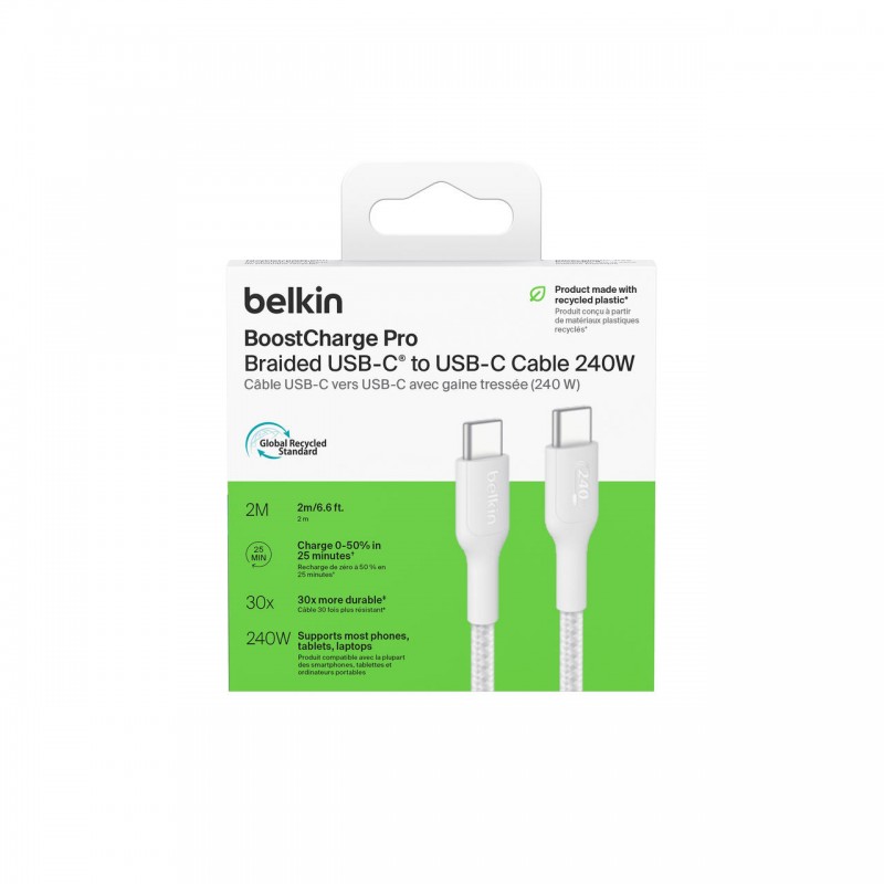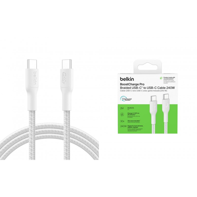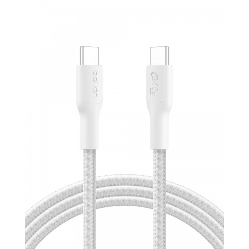 Кабель USB-C > USB-C заряджання/синхронізації Belkin 2м, 240Вт, Type-C, плетений, білий