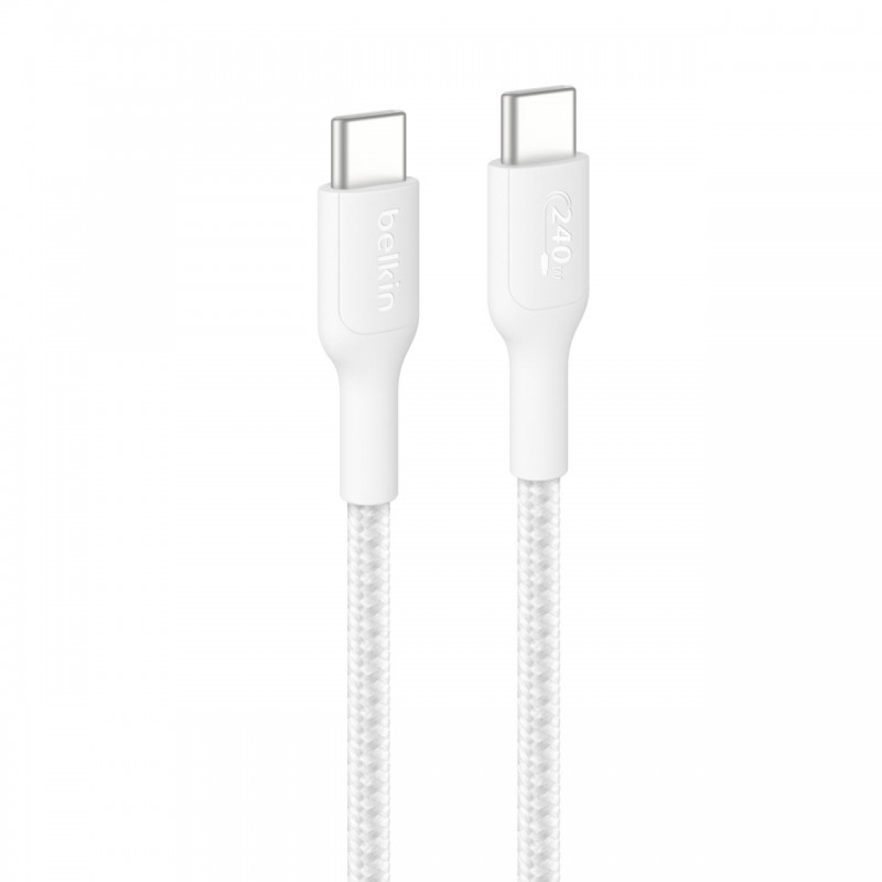 Кабель USB-C > USB-C заряджання/синхронізації Belkin 1м, 240Вт, Type-C, плетений, білий