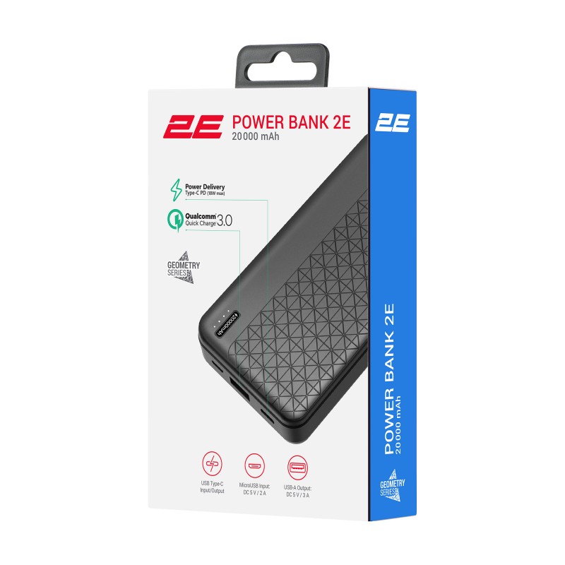 2E Портативний зарядний пристрій 20000mAh, Geometry, PD+QC 3.0 18W, black