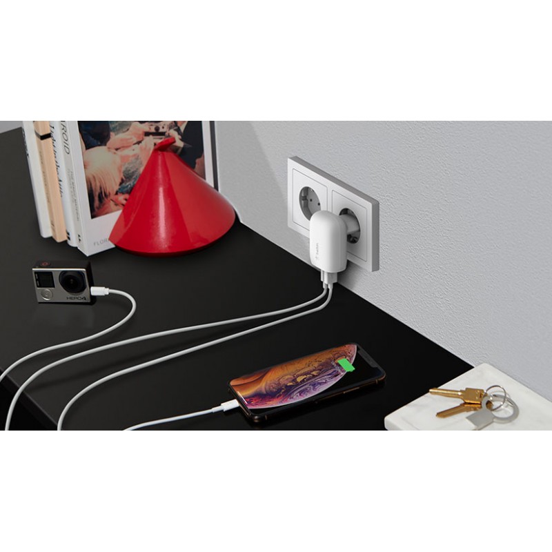 Наш зарядний пристрій з двома портами надає вам оптимізоване рішення для заряджання різних пристроїв, таких як iPhone, а також пристроїв Samsung та інших виробників. Він сертифікований за стандартом USB-C PD 3.0 і оснащений технологією PPS для оптимального заряджання — до 20 Вт для iPhone 12, 18 Вт для iPhone 8 - iPhone 11 і 25 Вт для Galaxy S21 Ultra 5G.