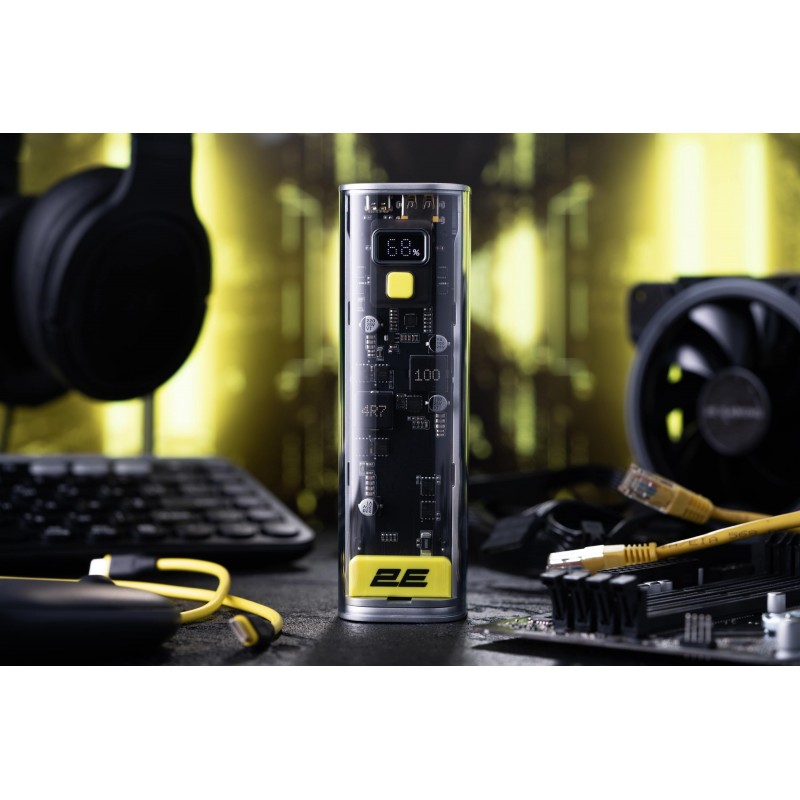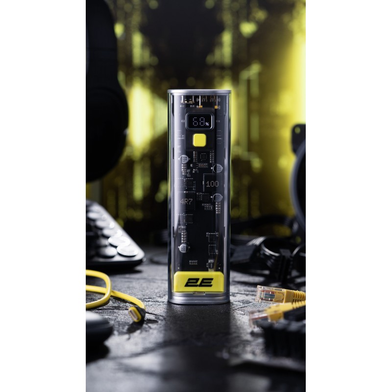 Прозорий корпус портативного зарядного пристрою Power Bank 2E Сrystal у стилі кіберпанк знаменує нову еру зовнішніх акумуляторів. Сrystal може швидко, безпечно та надійно заряджати всі сумісні пристрої та девайси. Він впорається з усіма потребами, що стосуються зарядки, завдяки двом портам USB-C і USB-А, призначеним для найсучаснішої електроніки і не тільки.