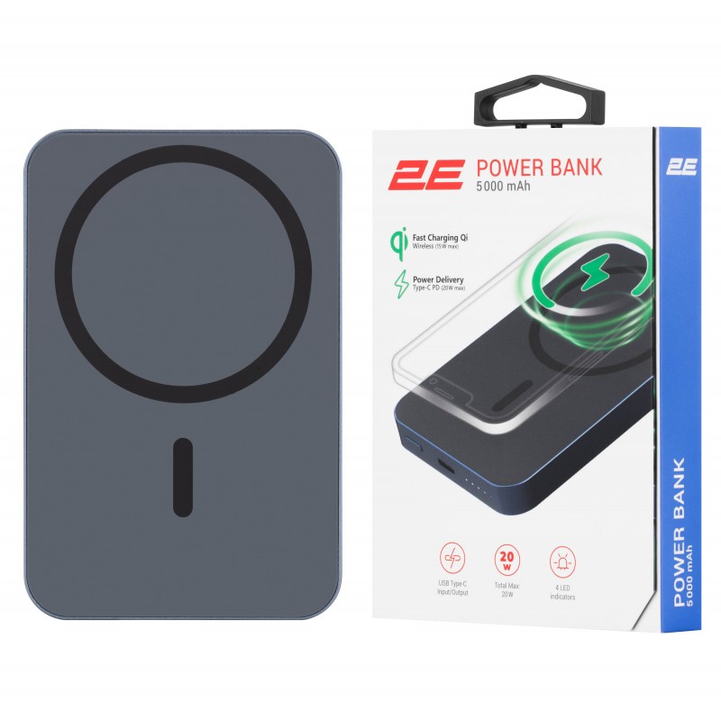 2E Акумулятор портативний літій-іонний Power Bank Wireless QI 5000мА·год, 20Вт, PD, синій