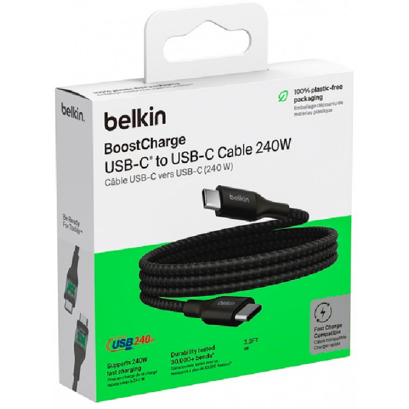Belkin CAB015BT1MBK — це високоякісний кабель USB-C > USB-C, який розроблений для швидкого заряджання і синхронізації даних. Його головна перевага — підтримка потужності до 240 Вт, що дозволяє заряджати навіть найвибагливіші пристрої, такі як ноутбуки, планшети та смартфони. Кабель також забезпечує швидку передачу даних, що ідеально підходить для роботи з великими файлами або синхронізації пристроїв.