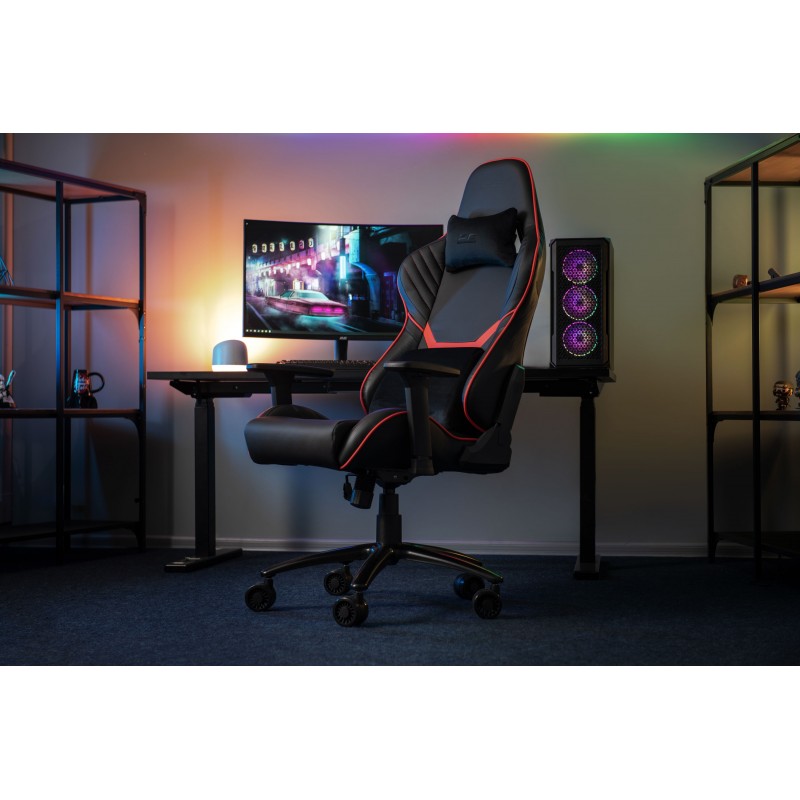 Червоно-чорне крісло заряджає на перемогу вже самим своїм виглядом. Конструкція крісла продумана до найменших деталей для оптимальної підтримки спини під час тривалих сесій.