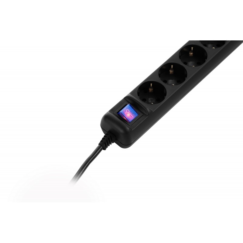 2E Мережевий подовжувач 5XSchuko з вимикачем, 3G*1.5мм2, 3м, black