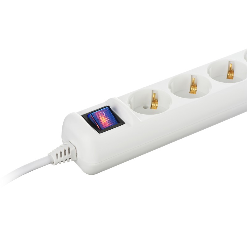 2E Мережевий подовжувач 5XSchuko з вимикачем, 3G*1.0мм, 3м, white