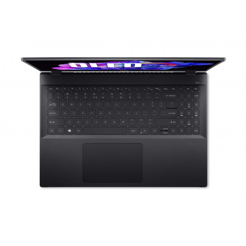 Корпус ноутбука має сучасний і легкий дизайн у чорному кольорі, що робить його стильним та зручним для транспортування. Завдяки товщині менше 16 мм та вазі близько 1,6 кг, Swift Go 16 легко брати з собою на роботу чи в подорожі.