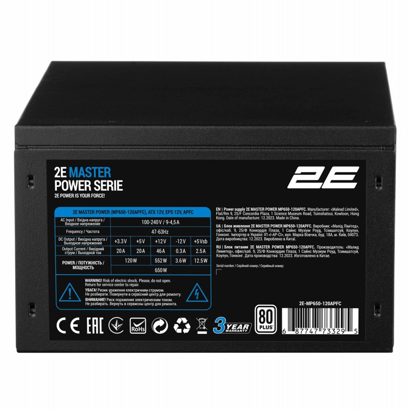 2E Блок живлення Master Power (650W), >80%, 80+ White, 120мм, 1xMB 24pin(20+4), 1xCPU 8pin(4+4), 3xMolex, 5xSATA, 2xPCIe 8pin(6+2)