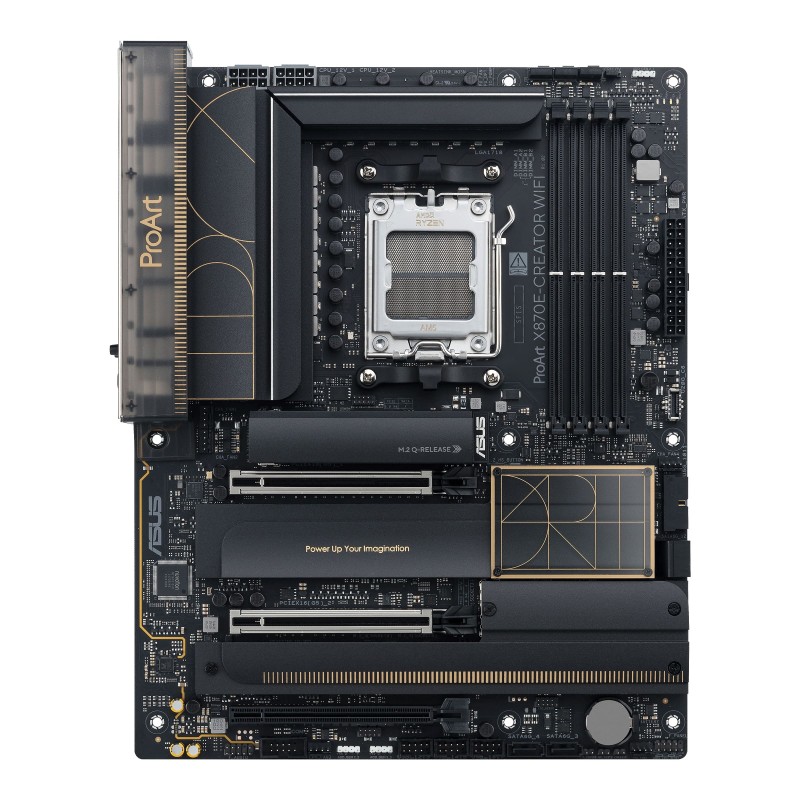 Розроблений для задоволення потреб багатоядерних процесорів, ProArt X870E-Creator WiFi має 16(80A)+2(80A)+2 каскадів живлення, які об'єднують MOSFET з високою та низькою потужністю та драйвери в пакети, розраховані на 80 ампер кожен. Така конфігурація забезпечує оптимальну подачу живлення, ефективність, стабільність і продуктивність як для поточних, так і для майбутніх процесорів AMD.